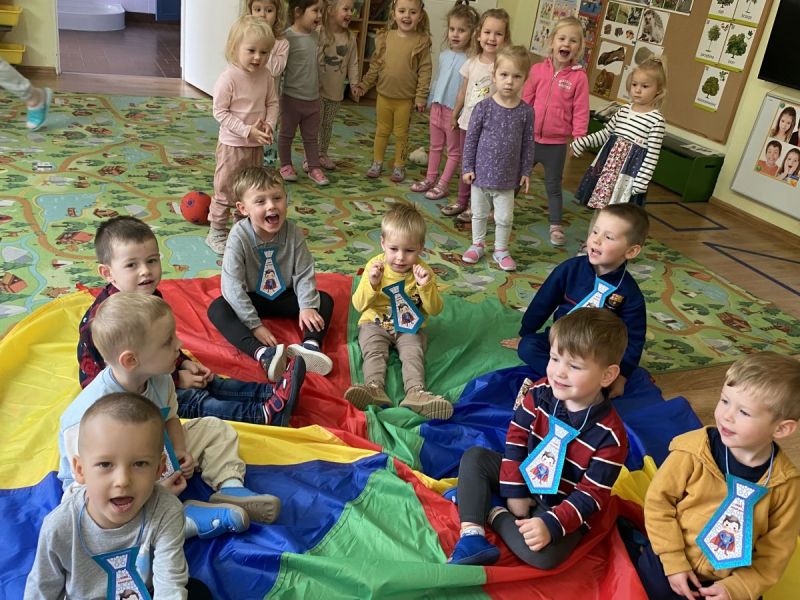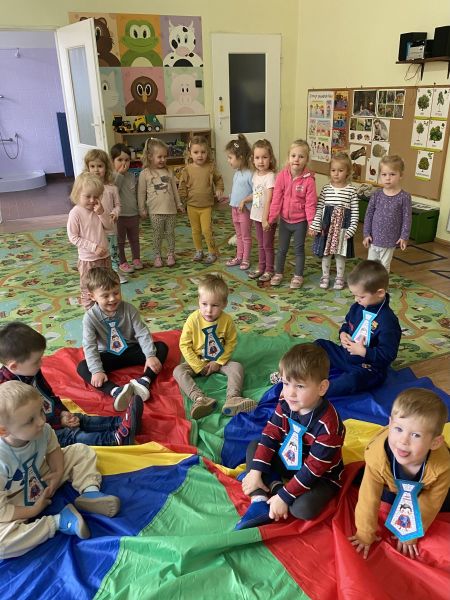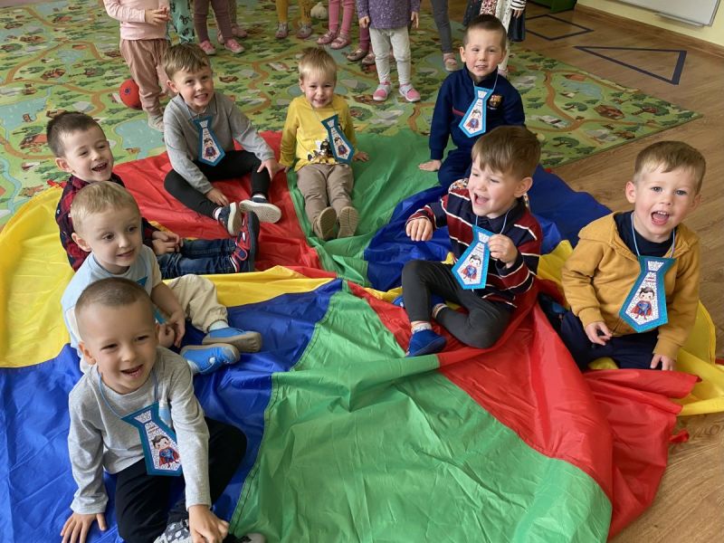 30 września obchodziliśmy święto wszystkich chłopców z naszej grupy. Były zabawy z wykorzystaniem chusty animacyjnej, dziewczynki złożyły swoim kolegom życzenia a na zakończenie wręczyły drobne upominki. Wzajemna życzliwość, sympatia i troska o drugiego człowieka, których uczymy na codzień, doskonale wpasowały się do „Tygodnia budowania wzajemnej relacji” w grupie przedszkolnej.