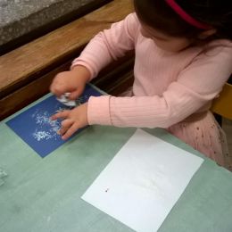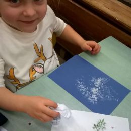 ..."Chodził malarz od chaty do chaty, wszystkie szyby malował w kwiaty- wszystkie okna malował srebrzyście, w małe gwiazdki i w palmowe liście....." My też chcemy być jak malarz mróz. Prawda, że nam się to udało?
