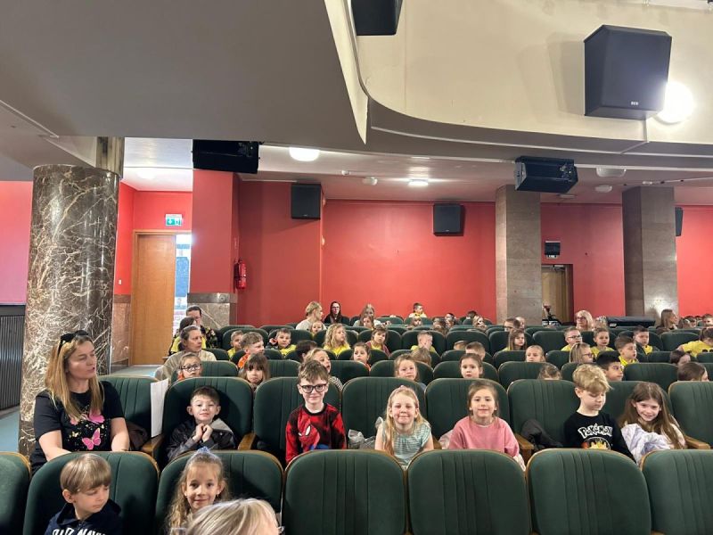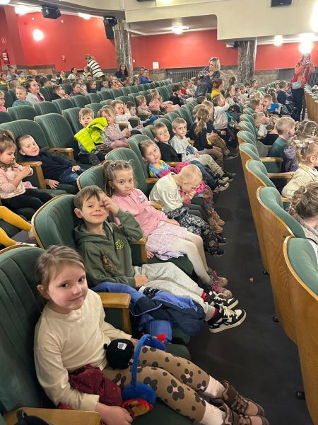 Dziś, 9.03.2026r., całe nasze przedszkole wyruszyło na wielką przygodę! 🧒👧🎒🚌 Kierunek: teatr w WDK w Kielcach 🎭✨